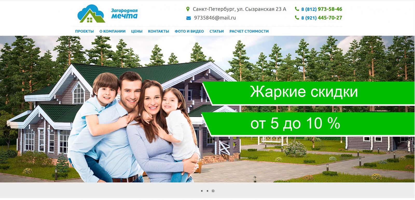 Компания «Загородная мечта» оказывает услуги деревянного строительства: проектирует, строит дома из профилированного бруса и каркасно-щитовой технологии. Собственный цех по производству свайно-винтовых фундаментов, бань и беседок – полный цикл работ. Клиент может заказать дом в комплектации «с отделкой» или просто домокомплект для самостоятельной сборки.