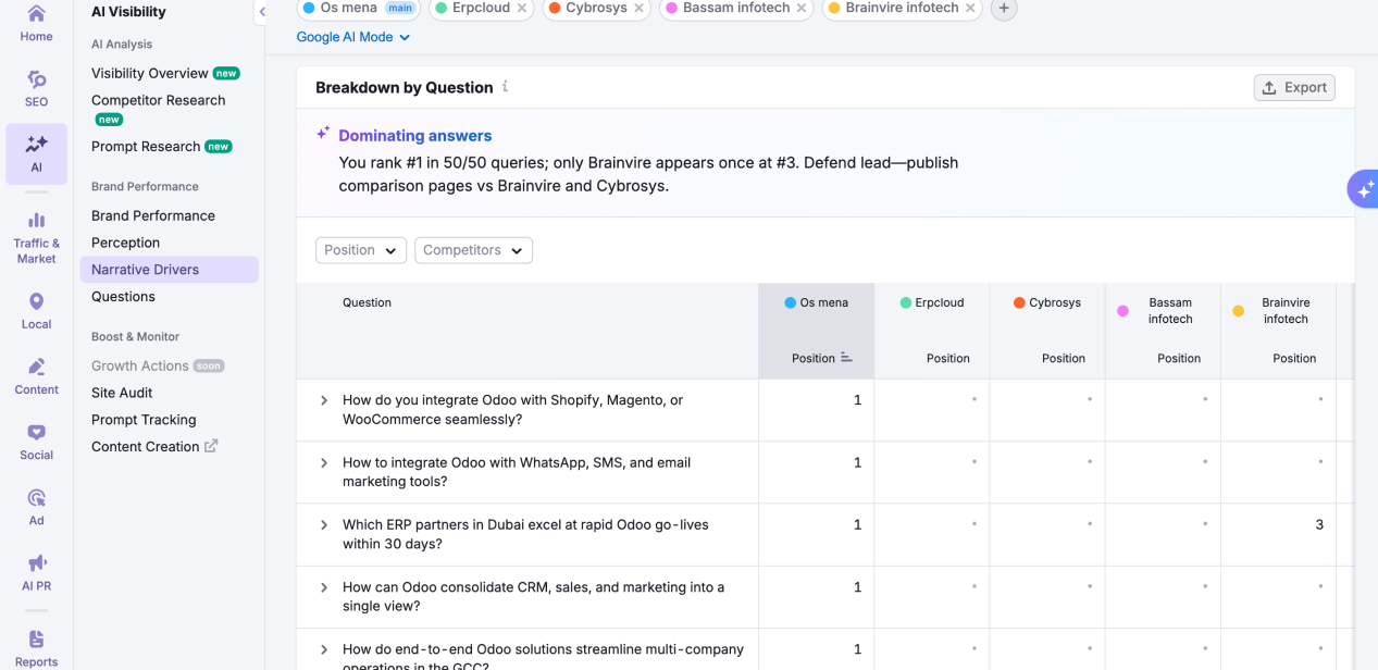 Глубокий анализ позиций и конкурентов во всех AI-системах