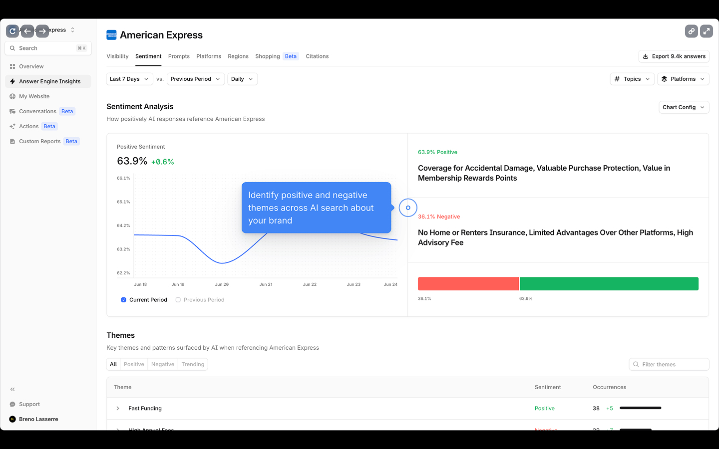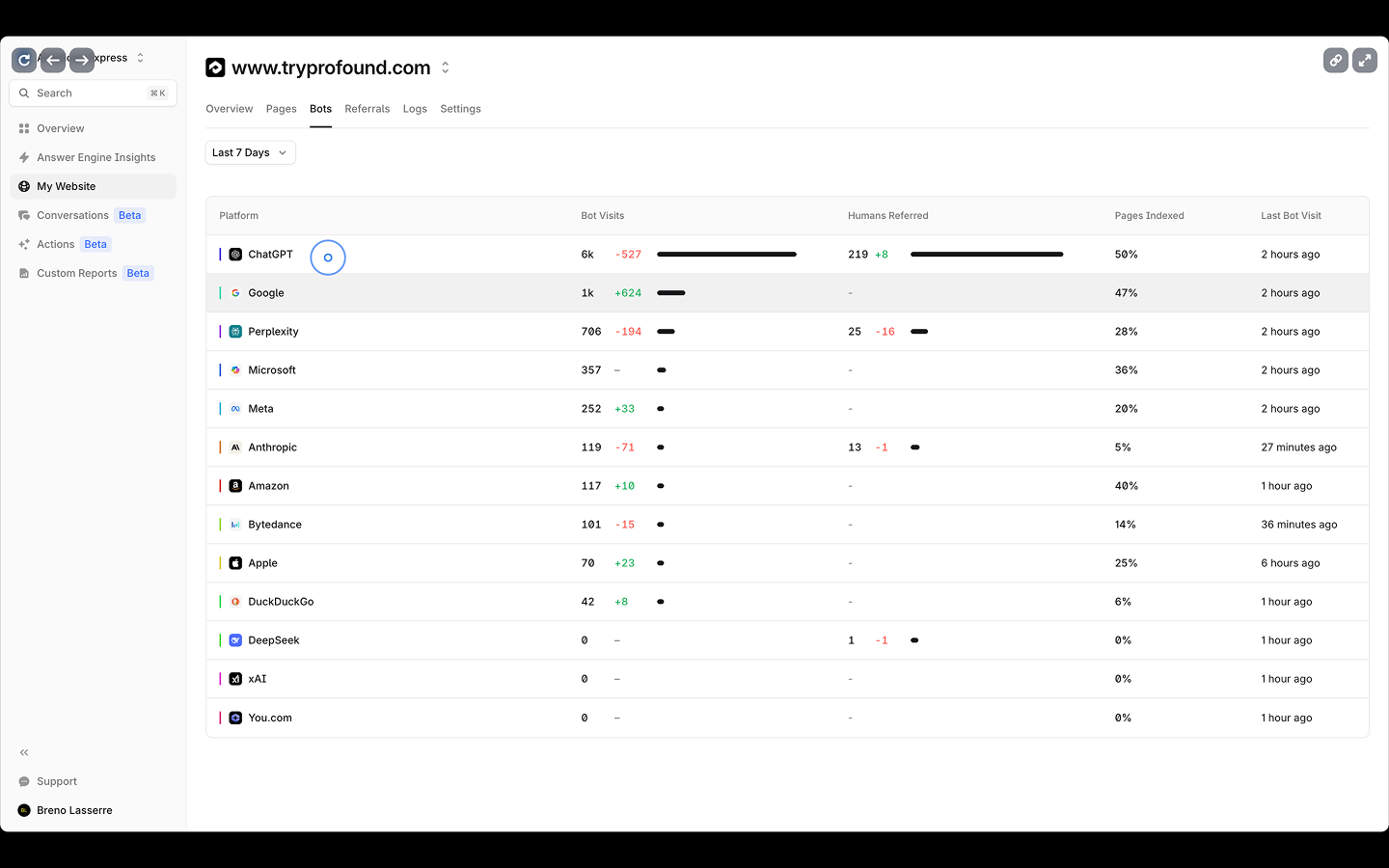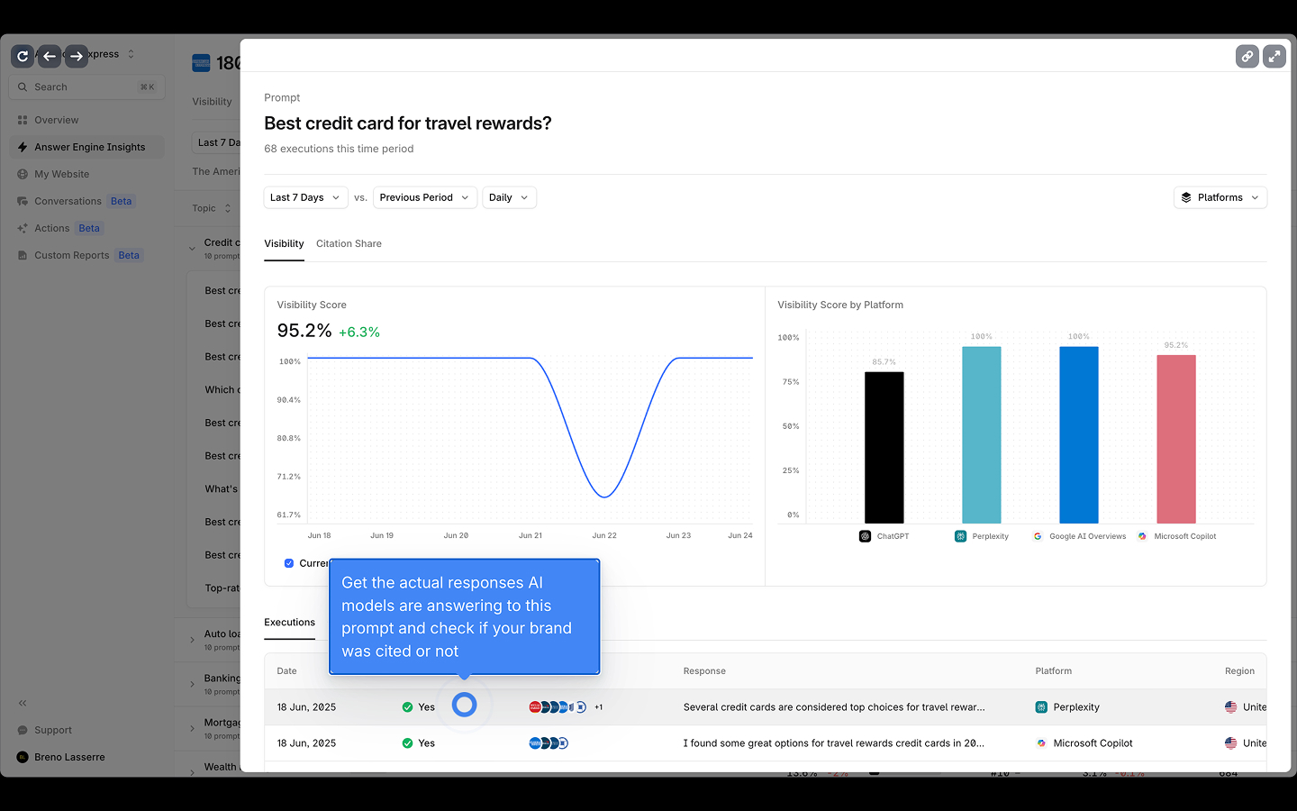 Spotlight — это первый инструмент Share of Voice, созданный для LLM (больших языковых моделей). Платформа отслеживает и улучшает видимость вашего бренда в AI-разговорах.