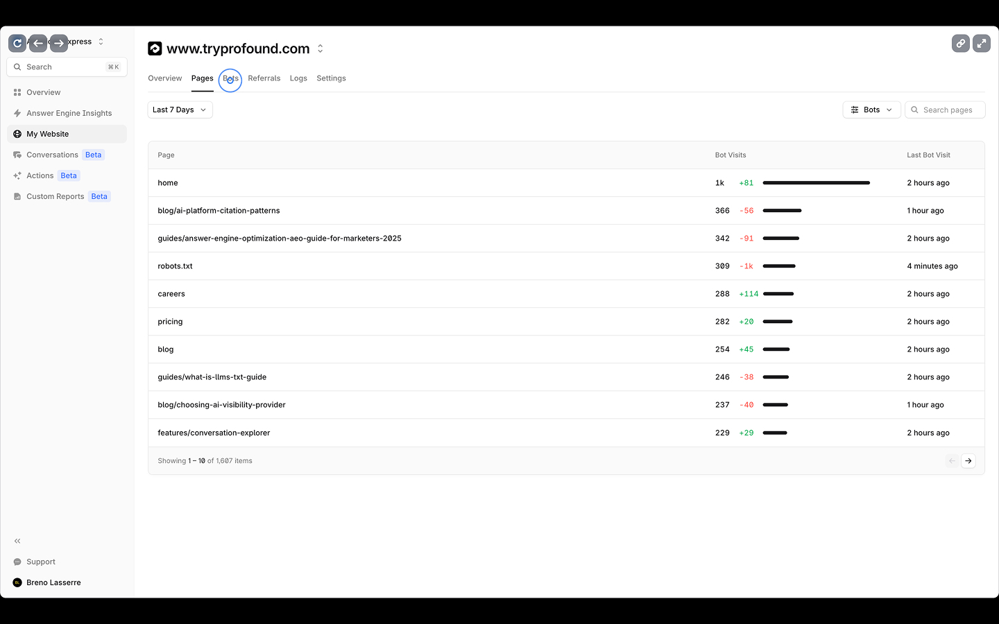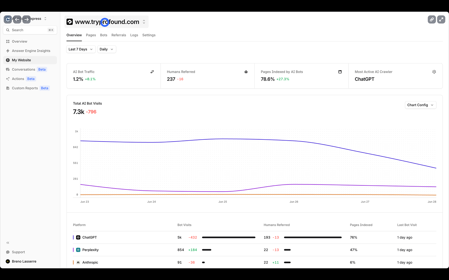 Автоматический анализ данных с выявлением конкретных возможностей для улучшения видимости бренда в AI-ответах.