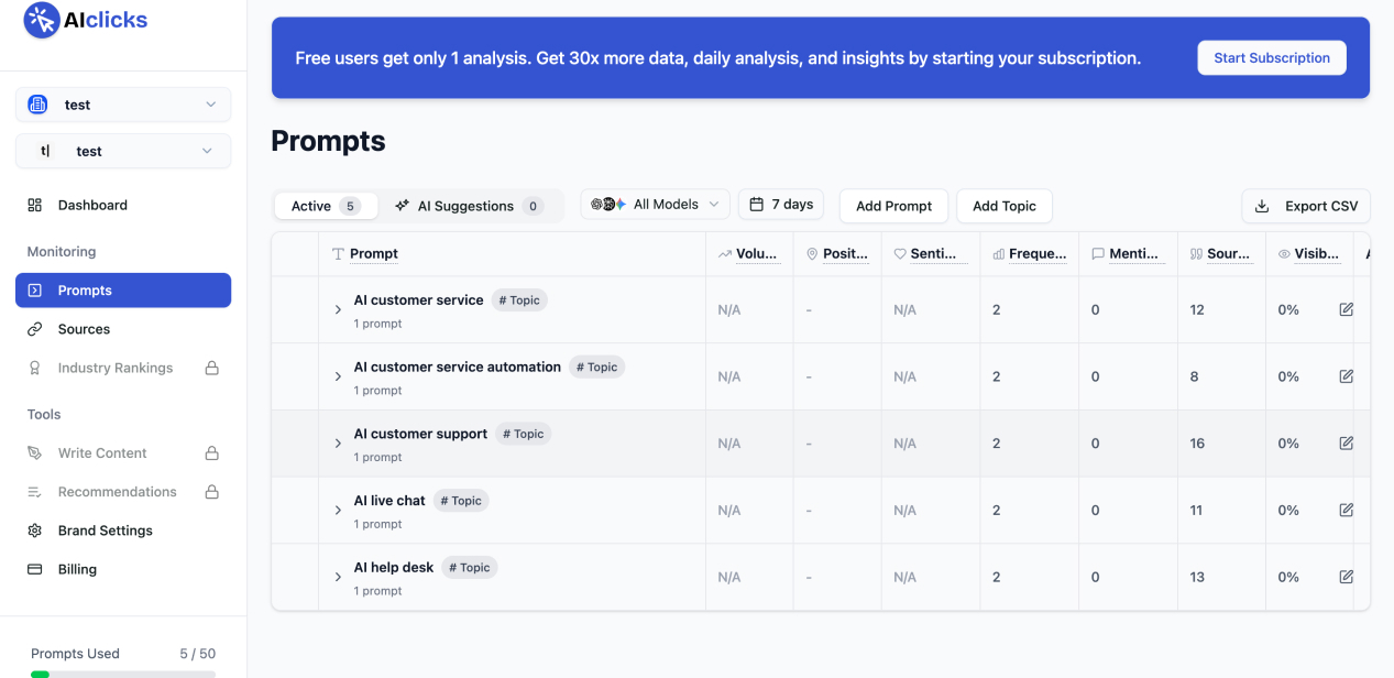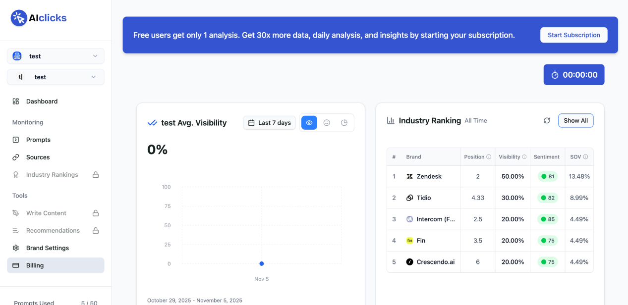 AIclicks использует гибридный подход, комбинируя данные о видимости в AI с мощными SEO-инструментами, чтобы обнаружить реальные причины, почему одни бренды появляются в AI-ответах, а другие нет
