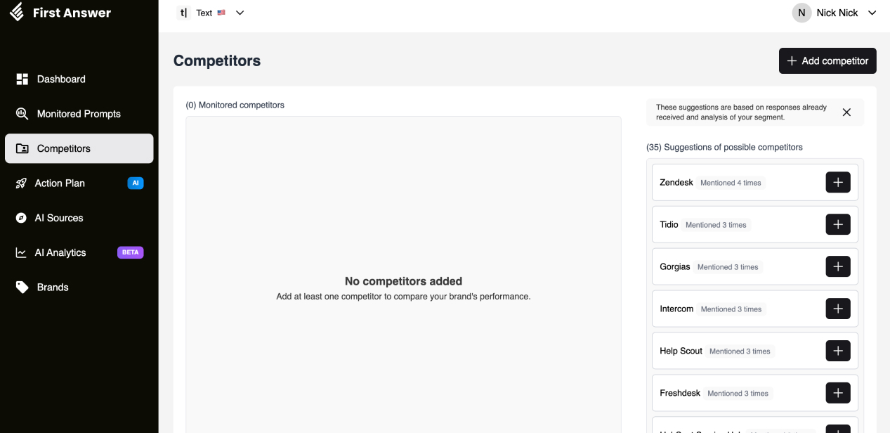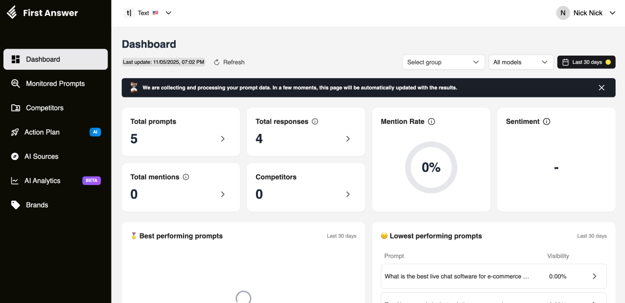 FirstAnswer — это платформа для GEO (Generative Engine Optimization), AIO (Answer Intelligence Optimization) и AEO (Answer Engine Optimization), созданная для улучшения видимости брендов в AI-ответах.