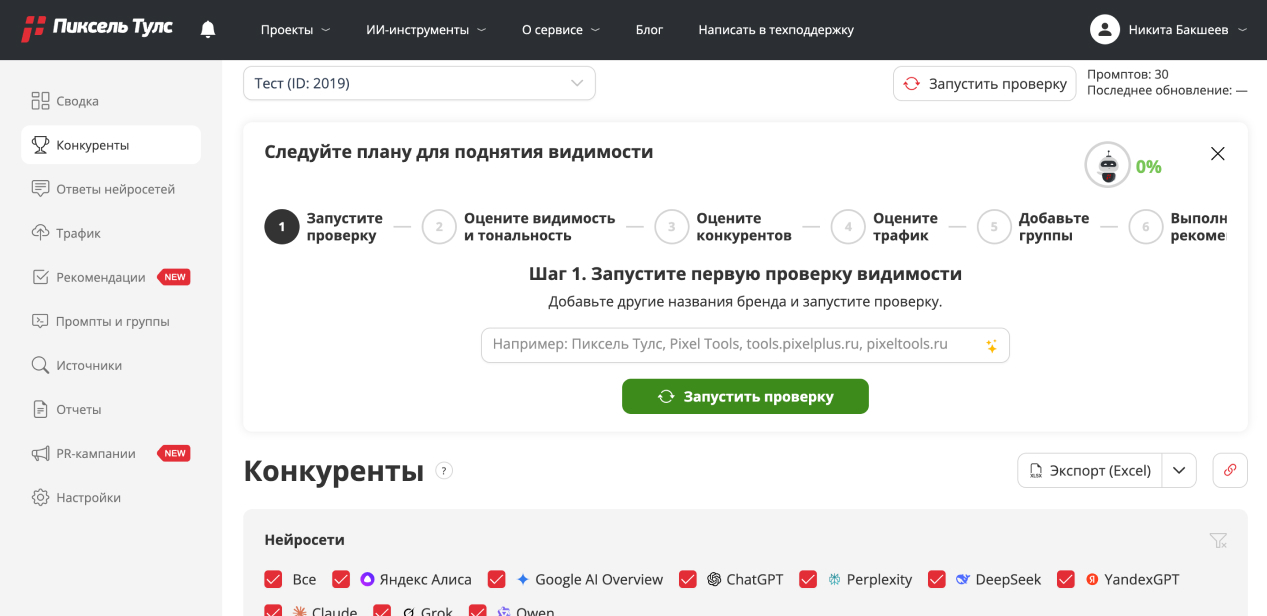 Сервис анализирует ответы пяти популярных нейросетей: ChatGPT, Claude, Perplexity, DeepSeek и Алиса AI LLM.