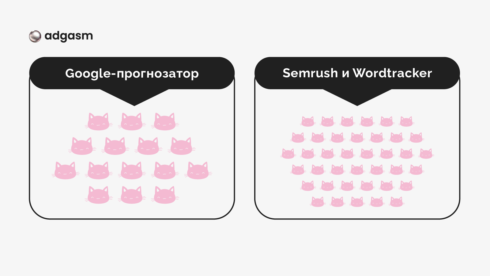 Ключевых фраз было мало: Google-прогнозатор собрал всего 15 вариантов. Проведение SEO-исследования не помогло, а спрос на услугу хотя и есть, сформирован специфически. Тогда мы подключили другие сервисы, с которыми уже работали: Semrush и Wordtracker. Это помогло увеличить количество ключевых фраз до 150.