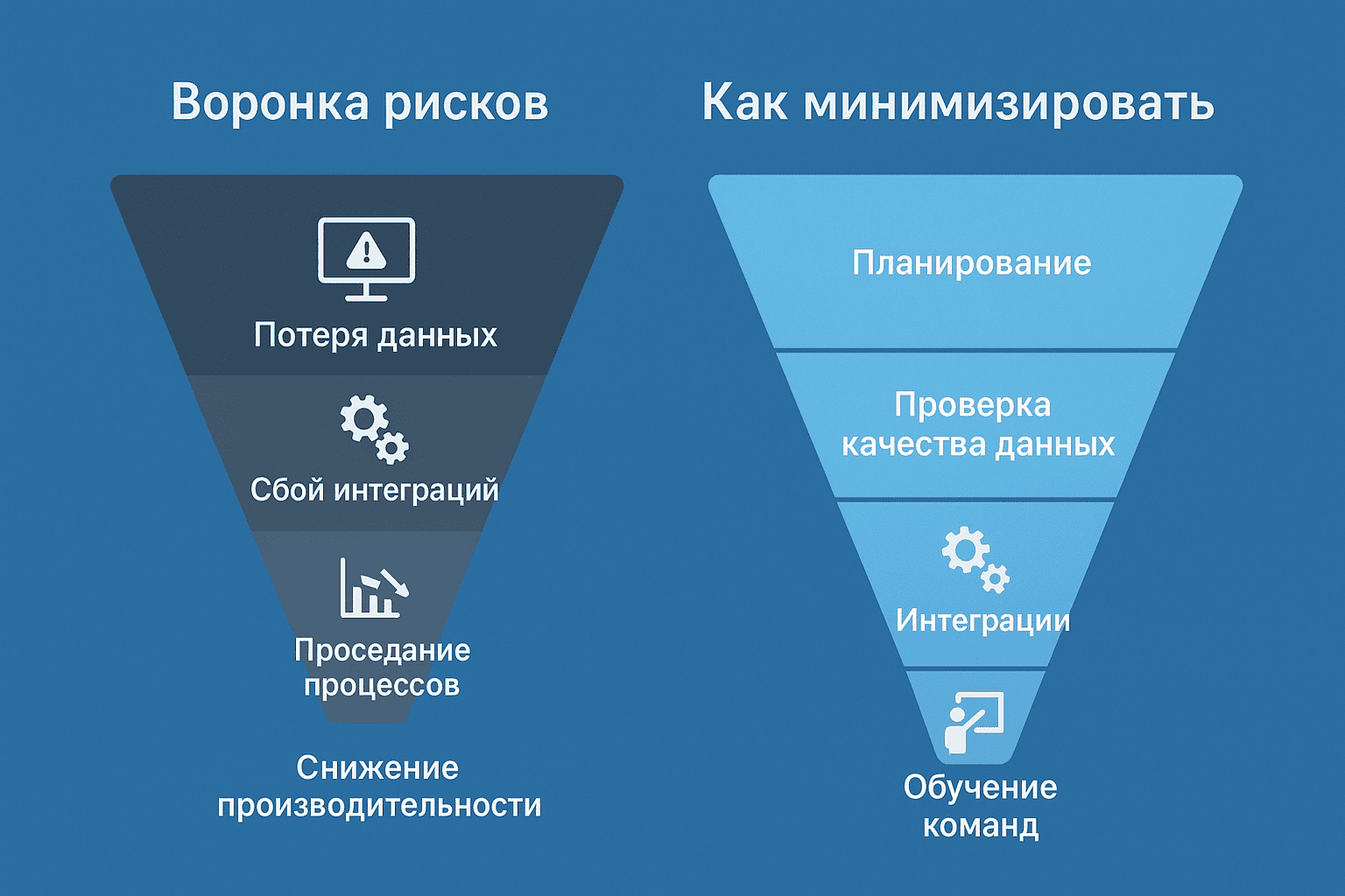Оценка рисков же начинается с понимания, какие процессы критичны для бизнеса и где любая ошибка может сказаться сильнее всего. Важно заранее продумать, как контролировать качество данных и корректность работы системы после перехода.