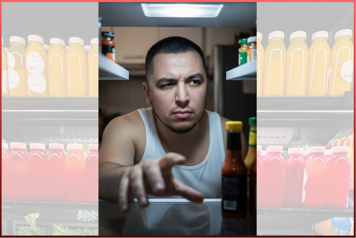 Промпт: Правило: Используй персонажа с загруженного фото; строго сохрани индивидуальные черты, форму глаз, носа, губ, мимику и пропорции. Максимальный фотореализм, без мультяшности и стилизации. Промпт: Фотореалистичный editorial-портрет в стиле «raw lifestyle / candid fashion». Вертикальный кадр, съёмка изнутри холодильника, сильная перспектива: рука на переднем плане тянется к полке, лицо близко к камере. Камера на уровне глаз, экв. 35–50 мм, малая ГРИП, акцент на лице. Персонаж с выразительным прищуром одного глаза, напряжённый взгляд правее объектива. Одежда: белая майка без принта. Сзади персонажа кухонный интерьер. Свет холодный, жёсткий бытовой, источник — лампа холодильника сверху и спереди; лёгкие тени, высокая детализация кожи и мышц. Атмосфера интимная, повседневная, слегка дерзкая. В кадре полки холодильника с соусами и банками, без логотипов. Цветокор нейтрально-холодный, кинематографичный, контраст средний. Цель — ощущение реального момента, как снимок профессионального фотографа, ультра-реализм.
