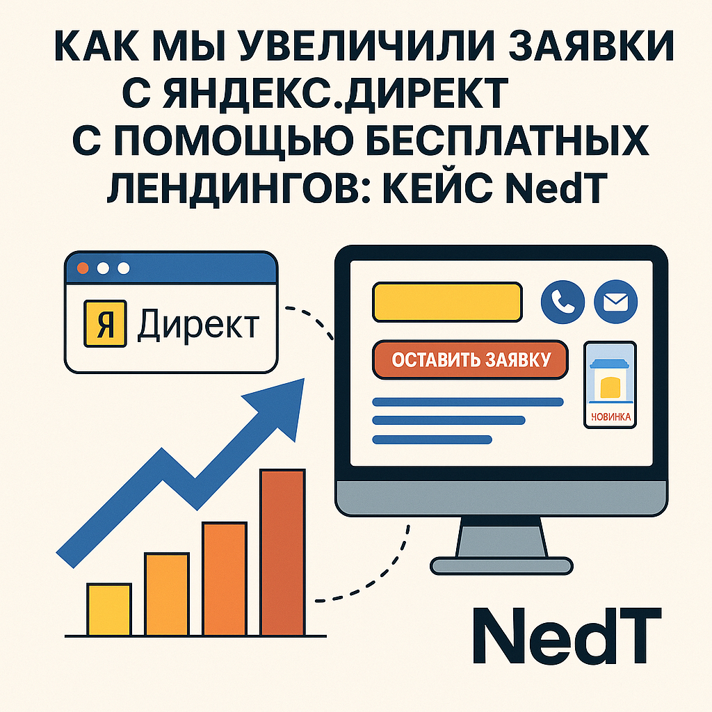 Классический запрос малого и среднего бизнеса: “Нам нужен сайт, но бюджет хочется тратить на рекламу, а не на разработку”. В 2025 году Яндекс.Директ закрыл эту боль лендингамиβ — простыми одностраничниками внутри экосистемы. Рассказываем на кейсе нашего агентства NedT Agency, как мы использовали бесплатный лендинг в Директе, чтобы быстро запустить сайт и увеличить число заявок.