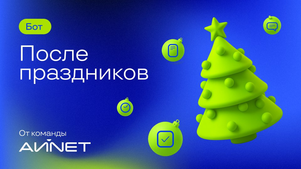 В преддверии новогодних праздников мы в АЙNЕТ выпустили чат-бот в Telegram «После праздников» — инструмент для рабочих чатов, который с юмором отвечает коллегам, что задачу лучше перенести на период после праздников, а также помогает зафиксировать все отложенные на январь задачи.