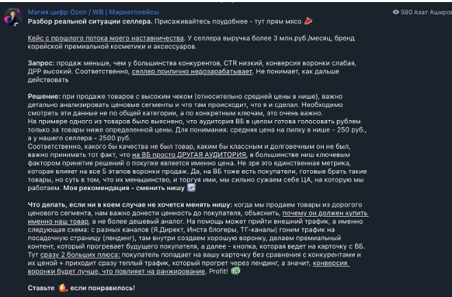 Хочешь также? В Telegram-канале Азат Аширов делится кейсами учеников, полезными разборами, фишками по Wildberries и Ozon!