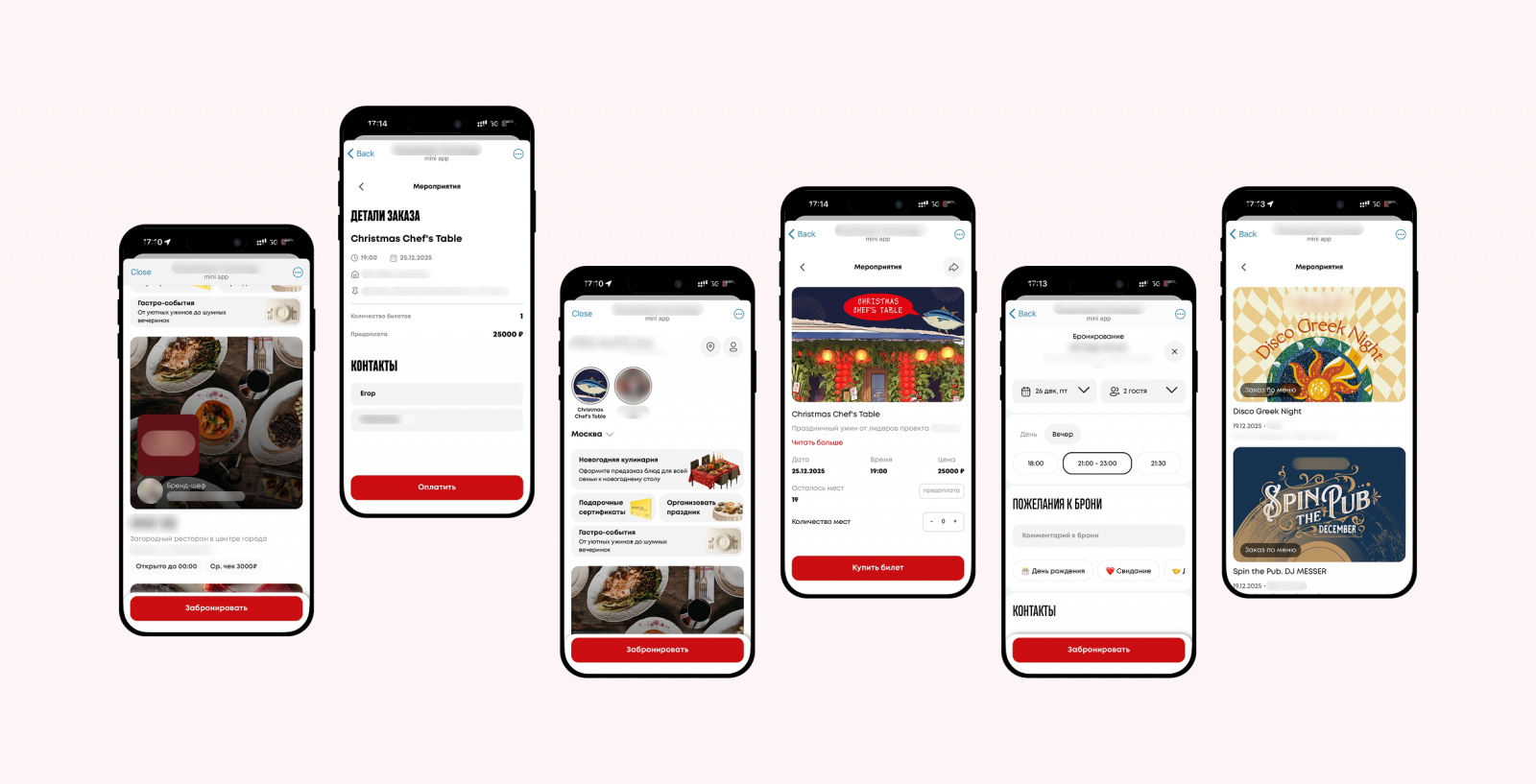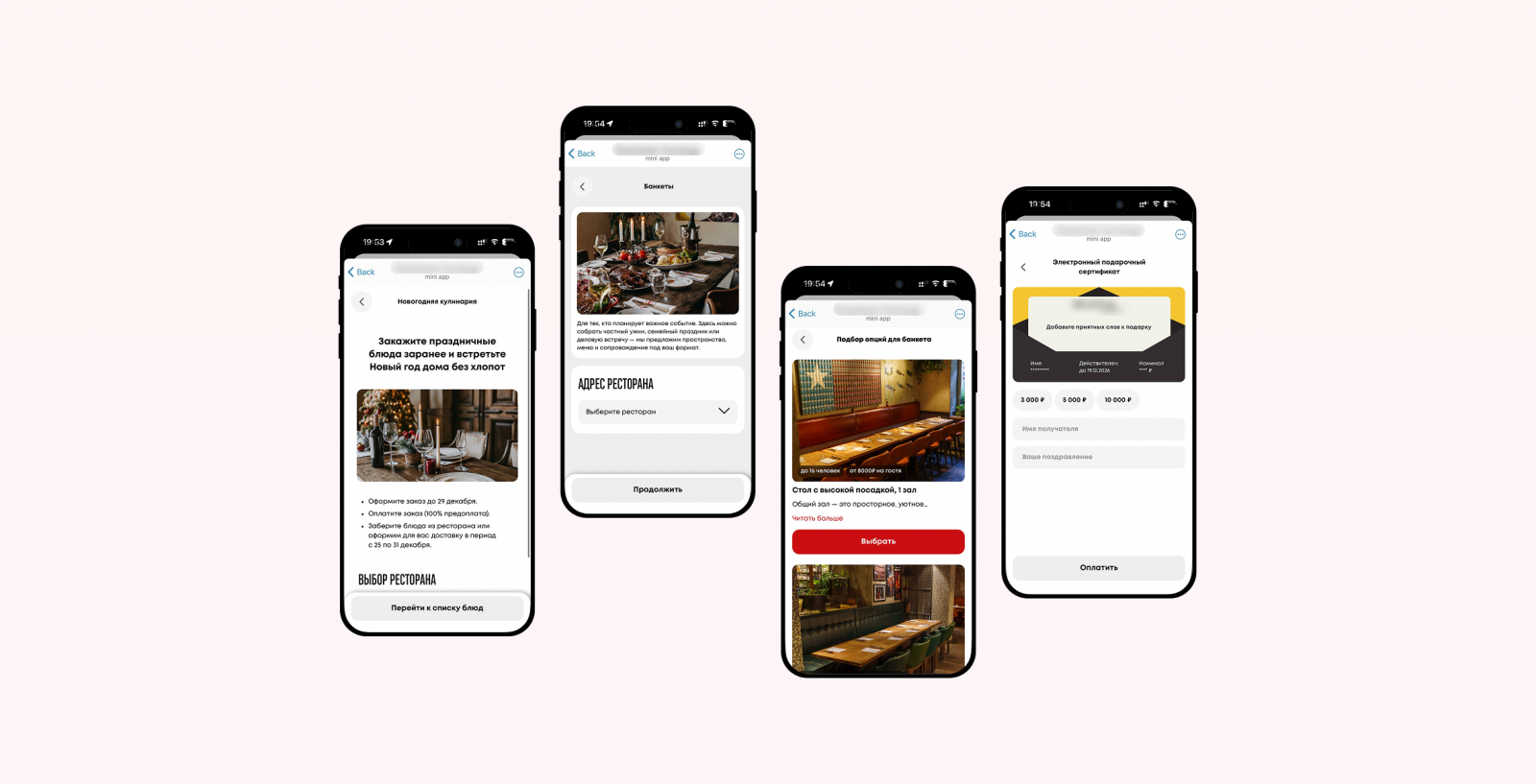 Помимо этого, у нас реализованы сбор аллергий, предпочтения, которые автоматически передаются в ресторан при бронировании, мы собираем предзапись на посещение ресторанов, которые планируют открываться, реализовали функцию отображения сторис с разбивкой по городам, сбор причины отмен бронирования и еще множество функций от вызова такси до индивидуальных привилегий для разных групп пользователей