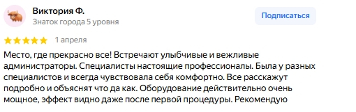 Если вы ищете место с серьезным оборудованием, честным подходом и готовы немного потерпеть ради гладкой кожи на годы - судя по отзывам, это хороший вариант.