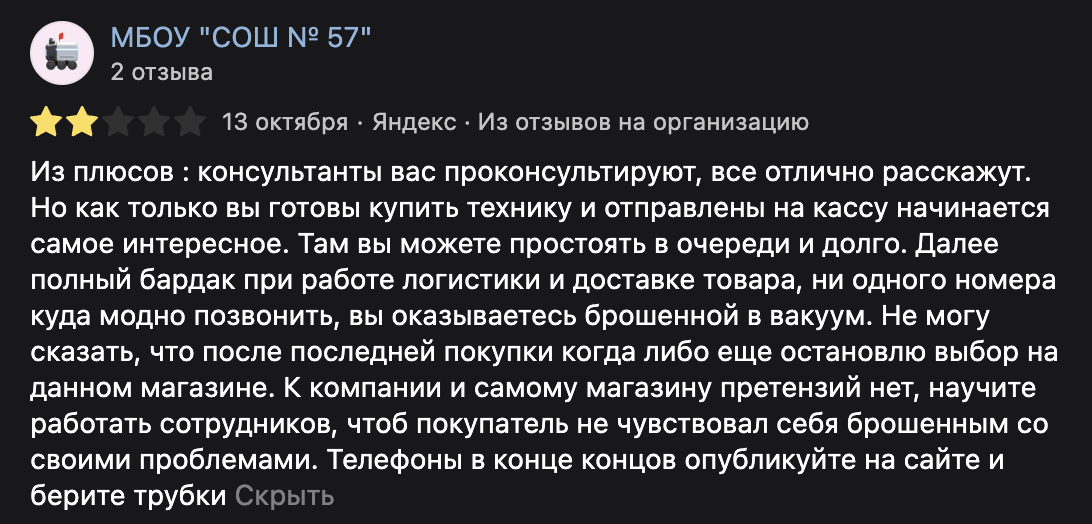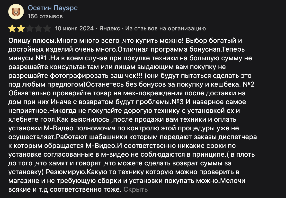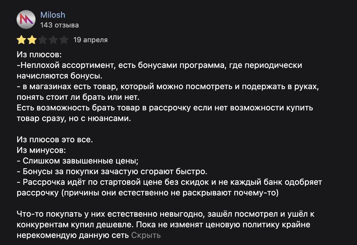 - Внимательно читайте отзывы о конкретном магазине на Яндекс.Картах перед тем, как идти туда. Репутация разных точек может сильно отличаться.