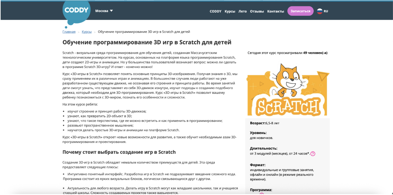 Рассматриваемый курс выстроен с учётом возраста учеников и ориентирован на практику: дети не заучивают термины, а создают собственные проекты — игры и мини-мультфильмы. Такой формат помогает формировать устойчивый интерес к обучению и даёт возможность довольно рано понять, насколько ребёнку близка сфера IT и программирования в целом.