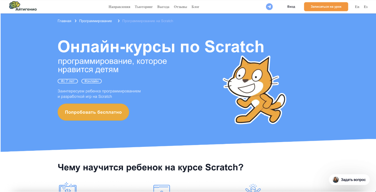 Scratch позволяет безопасно попробовать себя в IT. Уже в ходе курса становится понятно, интересно ли ребёнку программирование и стоит ли развиваться в этом направлении дальше.