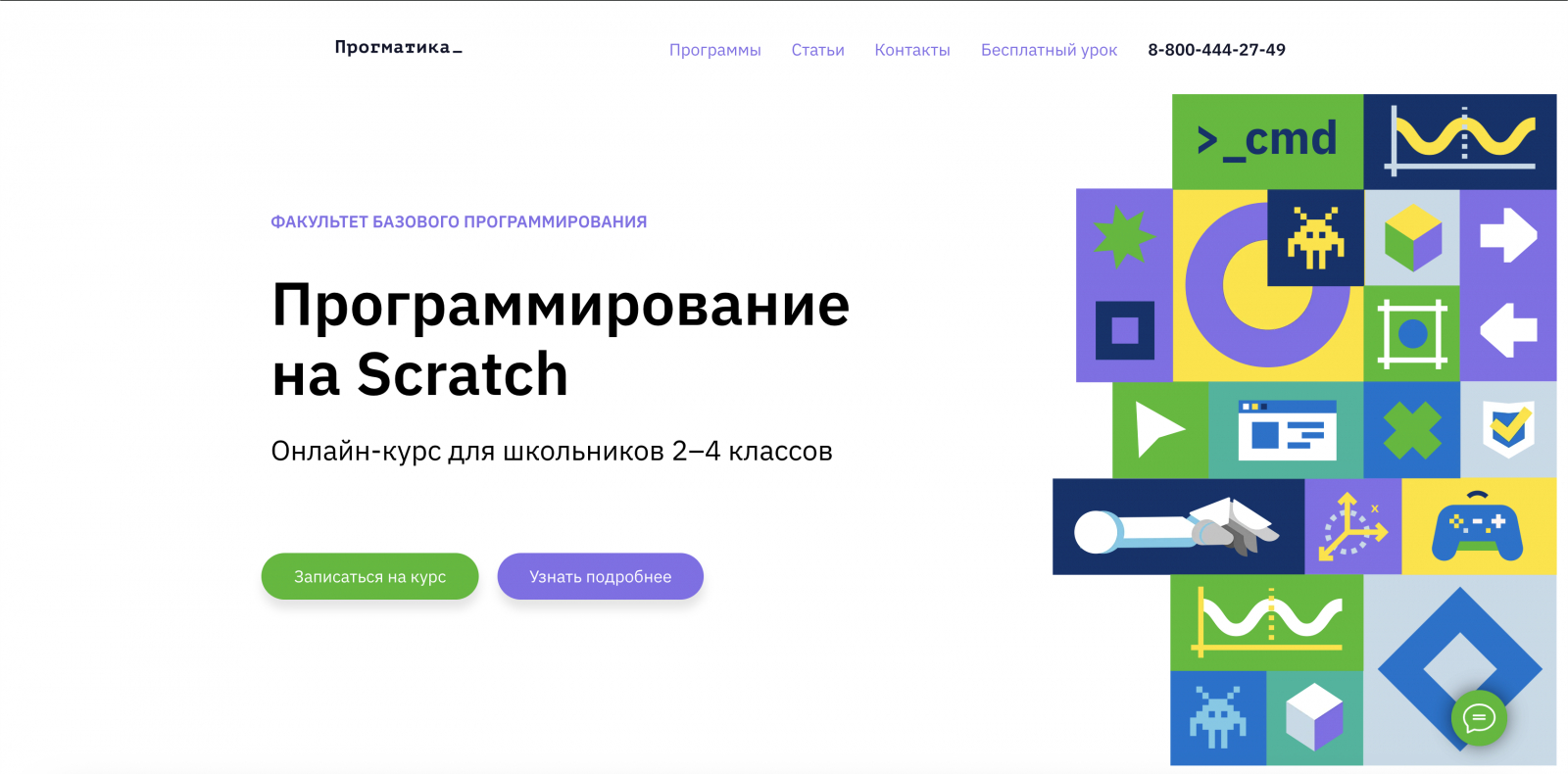 Онлайн-курс по Scratch для школьников 2–4 классов, рассчитанный на детей без предварительной подготовки. Обучение проходит в полуигровом формате и помогает сделать первые шаги в программировании.