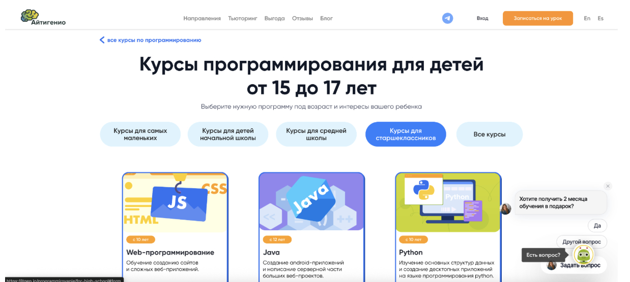 Все курсы в ITGENIO разделены по возрасту, что позволяет подобрать программу без перегрузки и «скачков» в сложности: