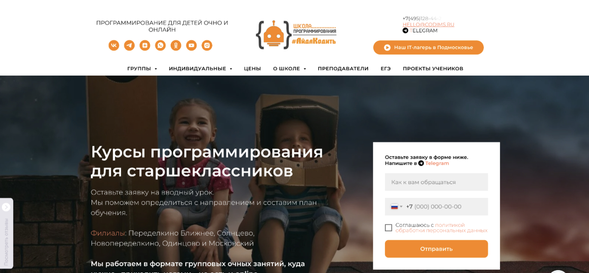 «АйДаКодить» — школа программирования для детей и подростков, работающая в очном и онлайн-формате. Основной акцент делается на живые занятия, небольшие группы и тесное взаимодействие с преподавателями. Школа представлена в нескольких районах Москвы и Подмосковья, что делает её удобной для семей, предпочитающих очное обучение, но при этом доступен и дистанционный формат.