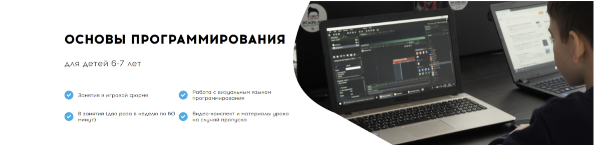 Темы: написание визуального кода, базовые команды, использование циклов, условия в программировании и т. д.