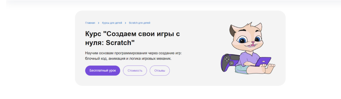 Темы: азы блочного кода, инструменты разработки в Скретче, управление графикой и работа со звуком, разработка мини-игр и т. д.