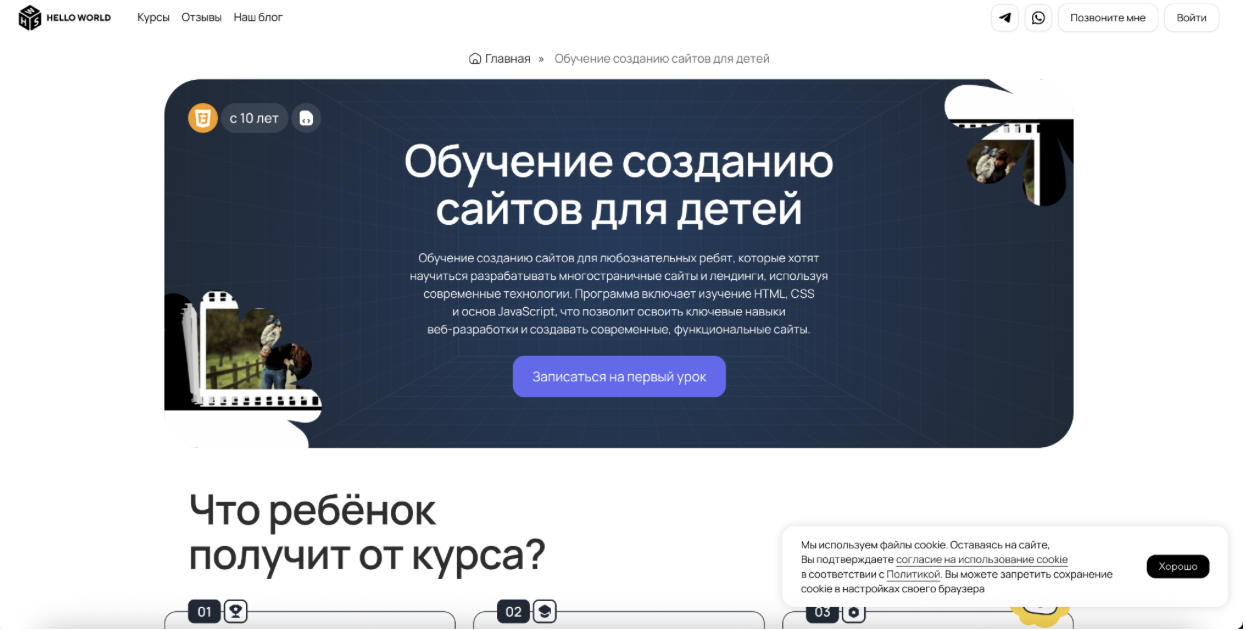 На курсе школьники с нуля создают собственный сайт. Это не просто набор упражнений — это проект, который может стать частью их портфолио.