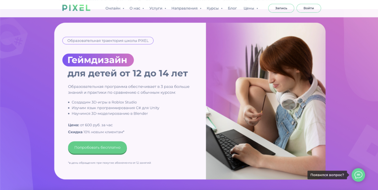 Формат: Обучение проходит онлайн в живом формате с преподавателем. Это регулярные занятия с объяснением материала, практическими заданиями и обратной связью. Курс выстроен как образовательная траектория, а не как набор отдельных уроков. Ученики работают над собственными проектами, получают поддержку наставника и могут начать с пробного занятия.