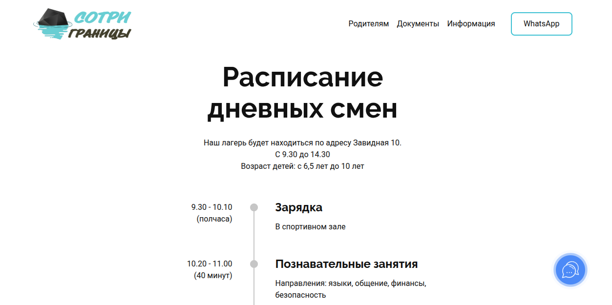 Режим работы: лагерь работает полный день, точное расписание уточняется при записи.