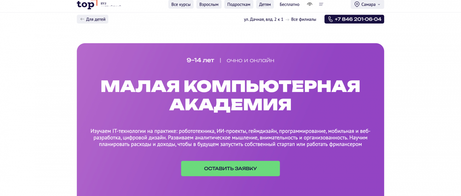 Курс «Малая компьютерная академия» от Компьютерной Академии ТОП — это комплексная программа для детей от 9 до 14 лет, направленная на освоение современных цифровых навыков, включая основы программирования и элементы работы с искусственным интеллектом. Обучение проходит онлайн и охватывает сразу несколько направлений, что позволяет ребёнку получить широкую базу знаний в IT.