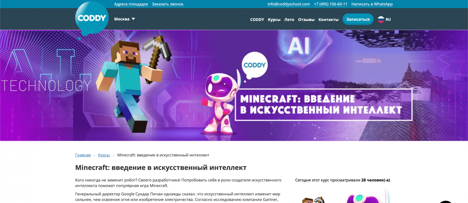 «Minecraft: введение в искусственный интеллект» от CODDY — обучение через игровую среду, где школьники изучают основы программирования и создают проекты в Minecraft.