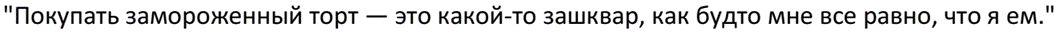 2. Стереотип «Заморозка = второй сорт» Это самый мощный барьер. Для потребителя «замороженный торт» ассоциативно стоит где-то рядом с дешевыми пельменями или старой пиццей. Стратегия «доступной роскоши», предложенная агентством, сталкивается с внутренним снобизмом аудитории.