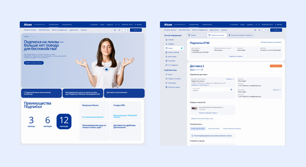 Команда Articul решала задачу со звездочкой: объединить разрозненные аудитории (B2B и B2C) в одной цифровой среде. Они запустили платформу «Мои Глаза», которая включает интернет-магазин, CRM-систему для врачей, программу лояльности и, главное, сервис подписки на линзы — первый подобного рода в России.