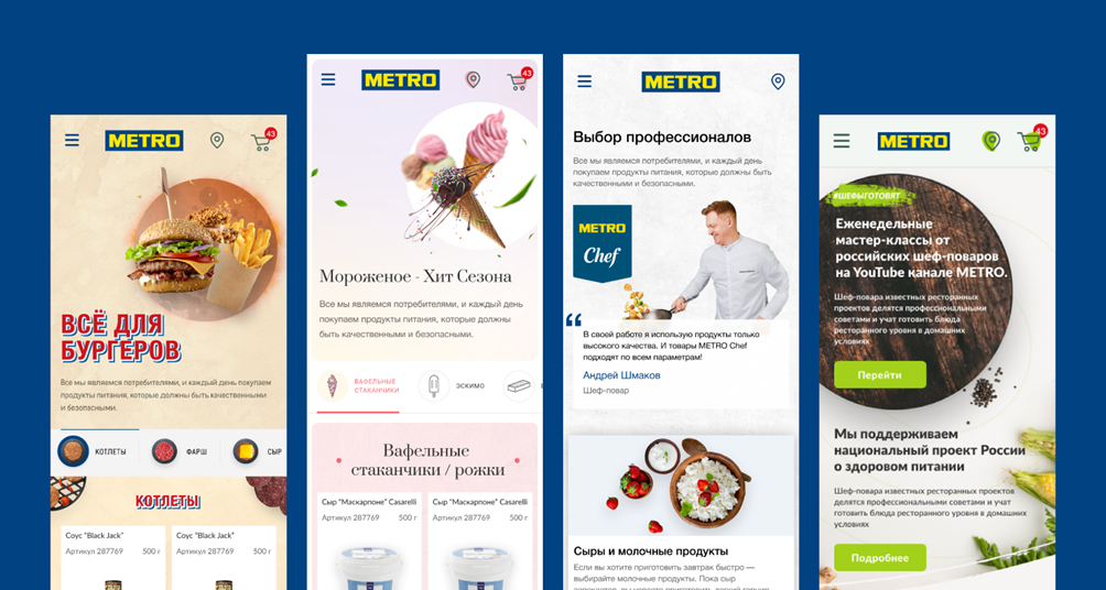 Агентство AIR Production пошло неочевидным путем. Вместо того чтобы загонять весь трафик на единый монструозный портал, они разработали серию специализированных мини-магазинов под конкретные потребности: METRO Asia, Rioba (для кофеен), Italia, Healthy. Визуально это выглядит стильно и чисто. Но давайте посмотрим, что стоит за красивым UI с точки зрения «мясной» аналитики потребителя.