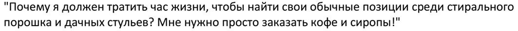 Главная проблема шеф-повара и закупщика — это не дефицит товаров, а дефицит когнитивного ресурса. Они перегружены. Аналитика показывает, что в общем каталоге гипермаркета профильные товары (большие упаковки, спецсоусы) смешаны с розницей, что превращает закупку в долгий и мучительный квест.