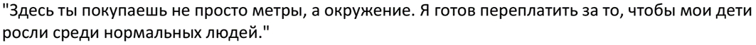 Главный барьер для ЦА — это не цена (хотя она важна), а ужас перед социальной средой типовой застройки. В отчете этот страх встречается повсеместно. Люди боятся не стен, они боятся тех, кто за ними. Агентство отвечает на это концепцией безопасности и фильтрации окружения.