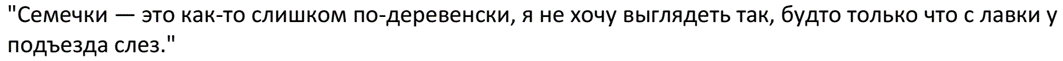 Аналитика показывает, что главный нервяк аудитории лежит не в плоскости «вкусно/невкусно». Для зумера семечки — это риск обрушить собственный социальный статус.