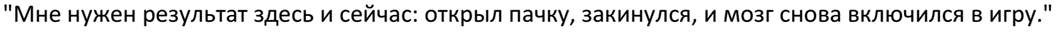 Семечки для этой ЦА — не еда, а легальный способ «занять руки» во время стресса. Это инструмент для входа в состояние потока, а не просто перекус. Лексика аудитории указывает на то, что продукт воспринимается как «микро-допинг» для мозга.