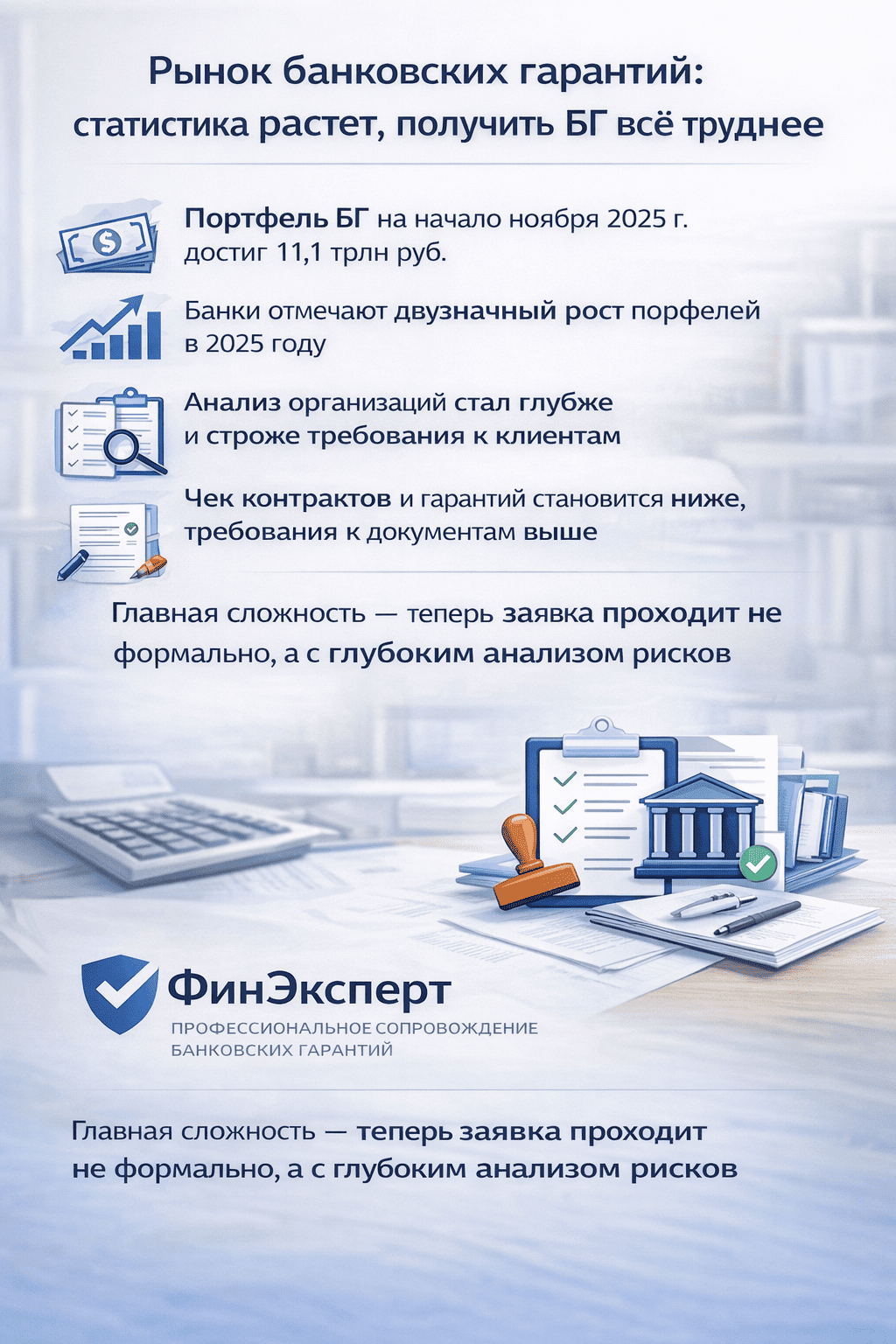 Рынок банковских гарантий в России не сжимается и не уходит в стагнацию. Напротив, он растёт вместе с деловой активностью бизнеса. Однако вместе с ростом усиливаются требования к качеству подготовки заявок, прозрачности бизнеса и корректности документов.