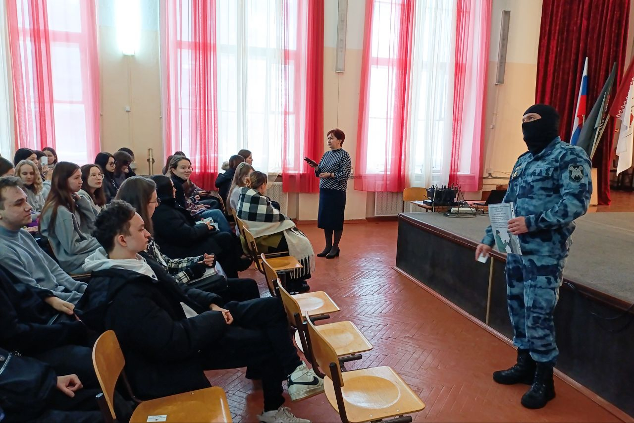 Управлением Росгвардии по Республике Марий Эл продолжается цикл торжественных и просветительских мероприятий, приуроченных к двум знаменательным датам: 10-летию со дня образования войск национальной гвардии Российской Федерации и 215-летию со дня формирования войск правопорядка. Очередная встреча в рамках этих торжеств прошла в стенах Йошкар-Олинского технологического колледжа, где гостями стали сотрудники ОМОН «Таир» регионального управления Росгвардии.Мероприятие направлено на военно-патриотическое воспитание молодежи, профессиональной ориентации студентов, а также популяризации службы в подразделениях специального назначения.В ходе открытого диалога сотрудники Росгвардии подробно рассказали учащимся об истории создания и славном боевом пути подразделения ОМОН «Таир». Особое внимание было уделено примерам мужества и героизма, проявленным сотрудниками при выполнении служебно-боевых задач. Представители ведомства подчеркнули важность преемственности поколений и сохранения традиций войск правопорядка.Студенты внимательно слушали гостей и активно интересовались тонкостями повседневной службы, требованиями к уровню физической подготовки и морально-психологическим качествам кандидатов.Также в ходе встречи представители ведомства проинформировали студентов о возможностях получения высшего образования в вузах войск национальной гвардии. Они подробно разъяснили правила приема, условия обучения и проживания курсантов, социальные гарантии и карьерные перспективы для будущих офицеров.Для более детального знакомства с ведомством и условиями поступления росгвардейцы раздали учащимся тематические агитационные материалы и информационные листовки с контактными данными.Подобные встречи, проходящие в рамках юбилейного цикла, вносят значительный вклад в формирование у подрастающего поколения чувства гражданственности и ответственности, а также помогают молодым людям сделать осознанный выбор будущей профессии, связанной с защитой правопорядка.
