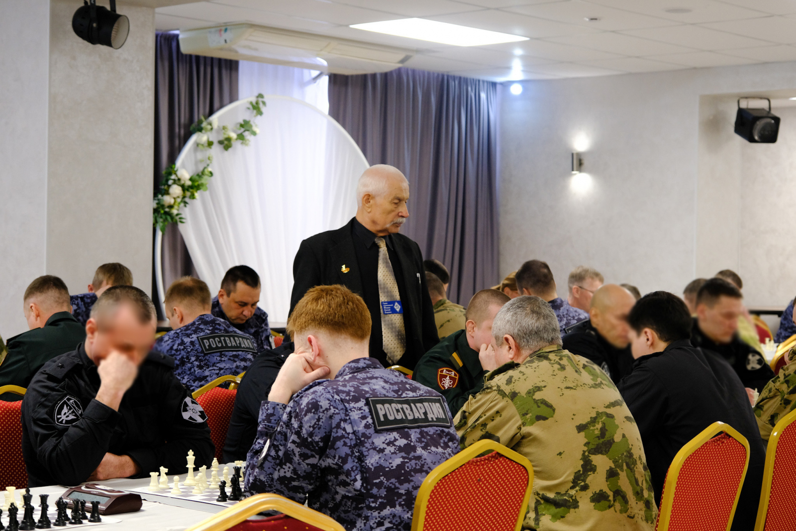 В Йошкар-Оле на базе конференц-зала АМАКС Сити-отель состоялся лично-командный чемпионат Приволжского ордена Жукова округа войск национальной гвардии Российской Федерации по шахматам. Эти соревнования стали особенными, поскольку проходят в знаменательный период: в год 10-летия образования Федеральной службы войск национальной гвардии и 215-летия со дня создания войск правопорядка. Таким образом, интеллектуальные баталии объединили историческую преемственность и современный уровень мастерства защитников Родины.Соревнования, проводимые на территории региона уже в третий раз, собрали 61 сильнейшего спортсмена из 20 команд, представляющих все территориальные управления и воинские части Приволжского округа Росгвардии. К участию в турнире допускались военнослужащие и сотрудники ведомства, успешно прошедшие предварительные отборочные этапы.Среди десятков серьезных соперников-мужчин на чемпионате была единственная представительница прекрасного пола - старший лейтенант полиции Елена Додонова, старший юрисконсульт отдела правового обеспечения Управления Росгвардии по Пермскому краю. Ее участие стало настоящим украшением чемпионата, доказав, что в войсках правопорядка служат не только сильные и смелые, но и по-настоящему интеллектуальные и утонченные натуры, способные дать бой любому сопернику за черно-белой доской.Турнир проводился по швейцарской системе в 9 туров с использованием правил быстрых шахмат. Победители определялись по наибольшему количеству набранных очков в личном и командном зачетах.По итогам напряженной борьбы первое место в командном зачете завоевала сборная Управления Росгвардии по Республике Марий Эл. Серебряным призером стала команда Центра подготовки личного состава (ЦПЛС) Приволжского округа Росгвардии. Замкнула тройку лидеров команда Управления Росгвардии по Нижегородской области.В личном первенстве победу одержал представитель Республики Марий Эл Максим Богданов. Второе место занял Андрей Е. (г. Тольятти), третье - Сергей Л. (г. Нижний Новгород).Шахматисты из Республики Марий Эл подтвердили репутацию не только гостеприимной, но и самой интеллектуальной республики, забрав первые места в обоих зачетах.В торжественной обстановке начальник физической подготовки и спорта округа полковник Сергей Аристов вручил победителям и призёрам ценные призы, грамоты и медали.Подводя итоги интеллектуального сражения, полковник Сергей Аристов отметил высокий уровень подготовки спортсменов, а также выразил отдельную благодарность руководству Управления Росгвардии по Республике Марий Эл и представителям судейской коллегии за безупречную организацию, высокий уровень проведения чемпионата и теплый прием участников.