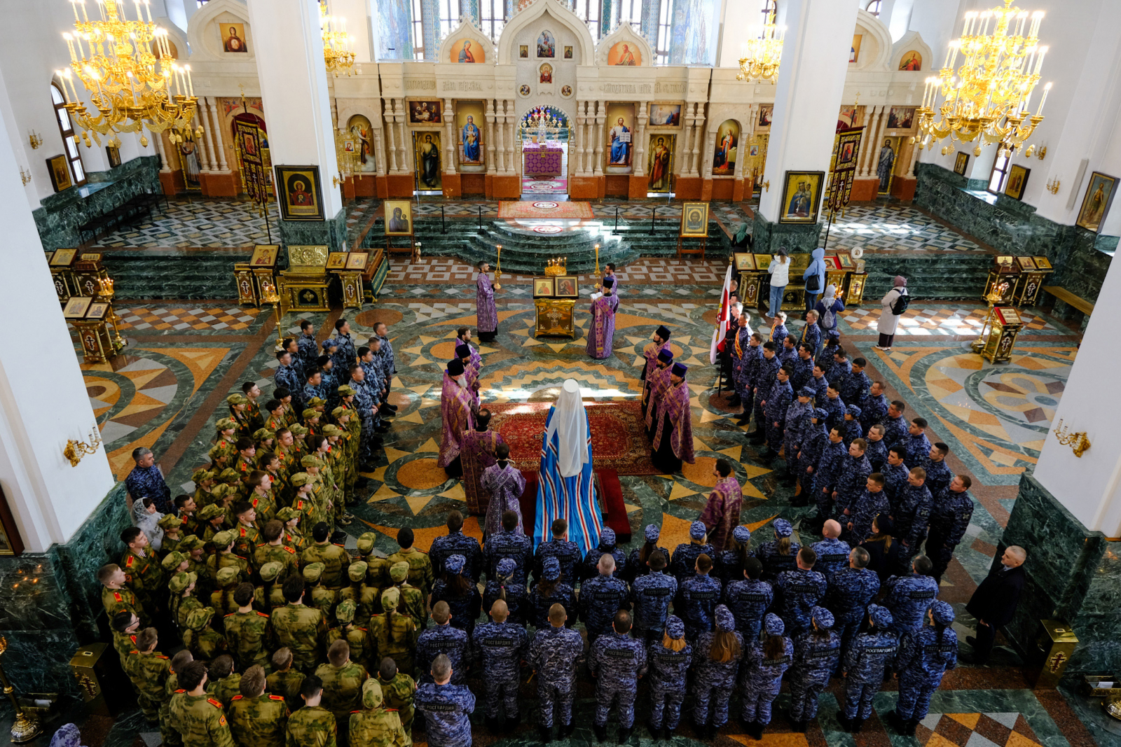 Мероприятие собрало широкий круг участников, подчеркнув единство и сплоченность личного состава. За богослужением молились руководство, военнослужащие и сотрудники Управления Росгвардии по Республике Марий Эл, представители ветеранских организаций, а также кадеты подшефных школ. В этот день под сводами собора объединились представители всех подразделений ведомства, включая сотрудников специальных подразделений, которые несут службу в условиях повышенной ответственности и часто убывают в длительные командировки.Важность мероприятия определялась не только юбилейной датой, но и особым духовным настроем. Для росгвардейцев, чья профессия сопряжена с ежедневным риском и требует высокой моральной стойкости, обращение к вере является важной опорой. Молитва в день образования войск национальной гвардии стала символом преемственности поколений и нерушимой связи между защитниками Родины и Русской Православной Церковью.