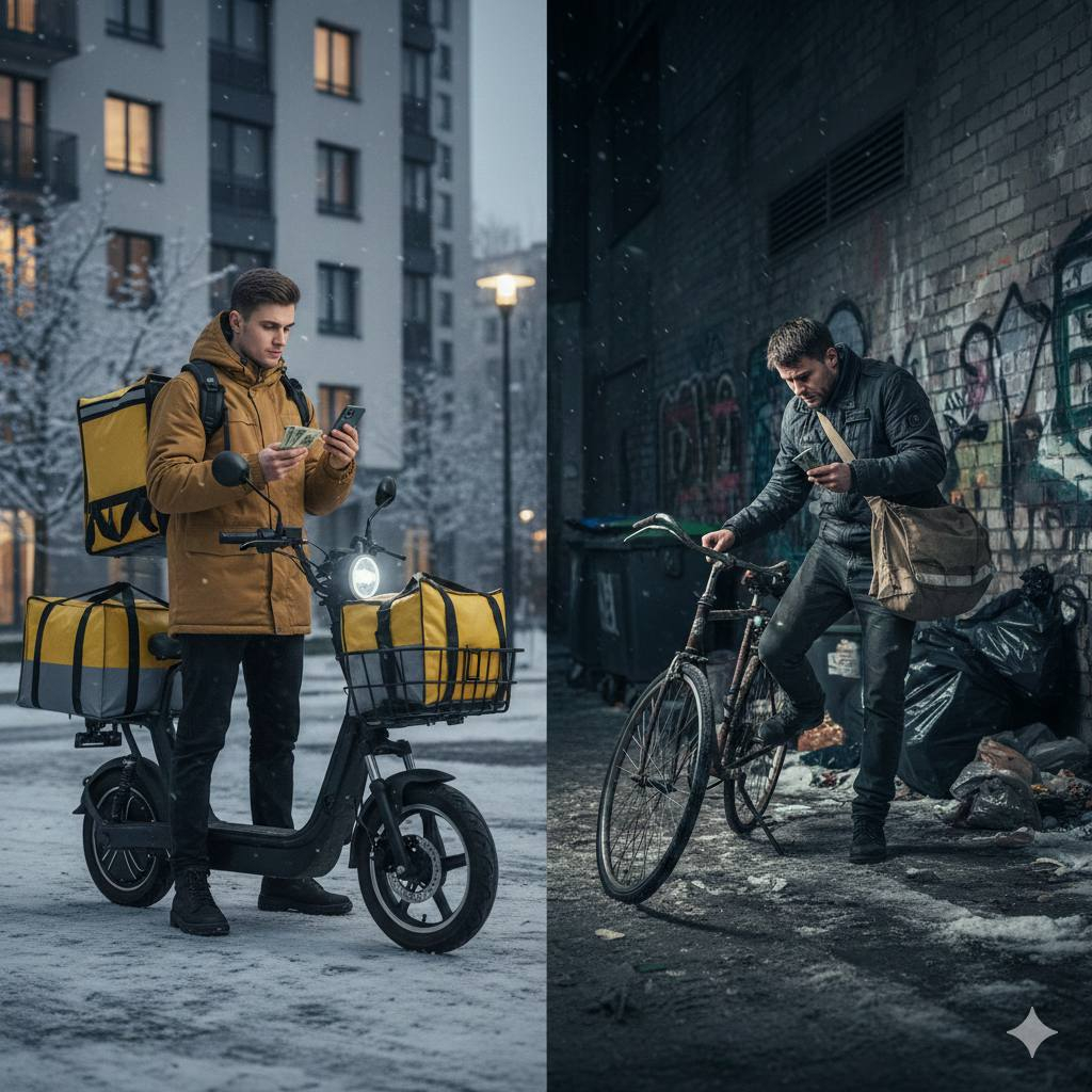 Результаты оказались неожиданными. Дело не в удаче, не в "хороших районах" и даже не в типе транспорта. Разница — в финансовой стратегии и понимании математики доставки.