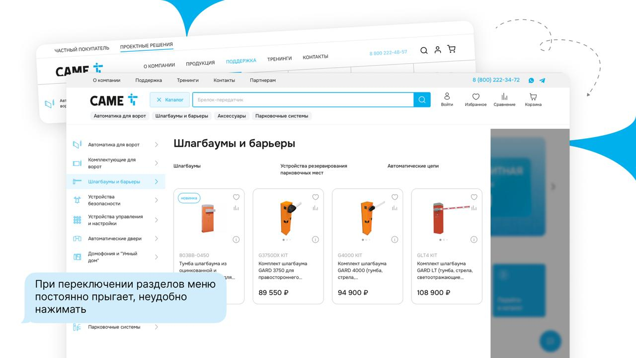 Для перезапуска сайта и товарного каталога пришлось полностью переработать дизайн. При этом гайдлайны международного сайта CAME накладывали ограничения: глобально менять визуальный язык бренда было нельзя. Это стало одним из вызовов проекта.