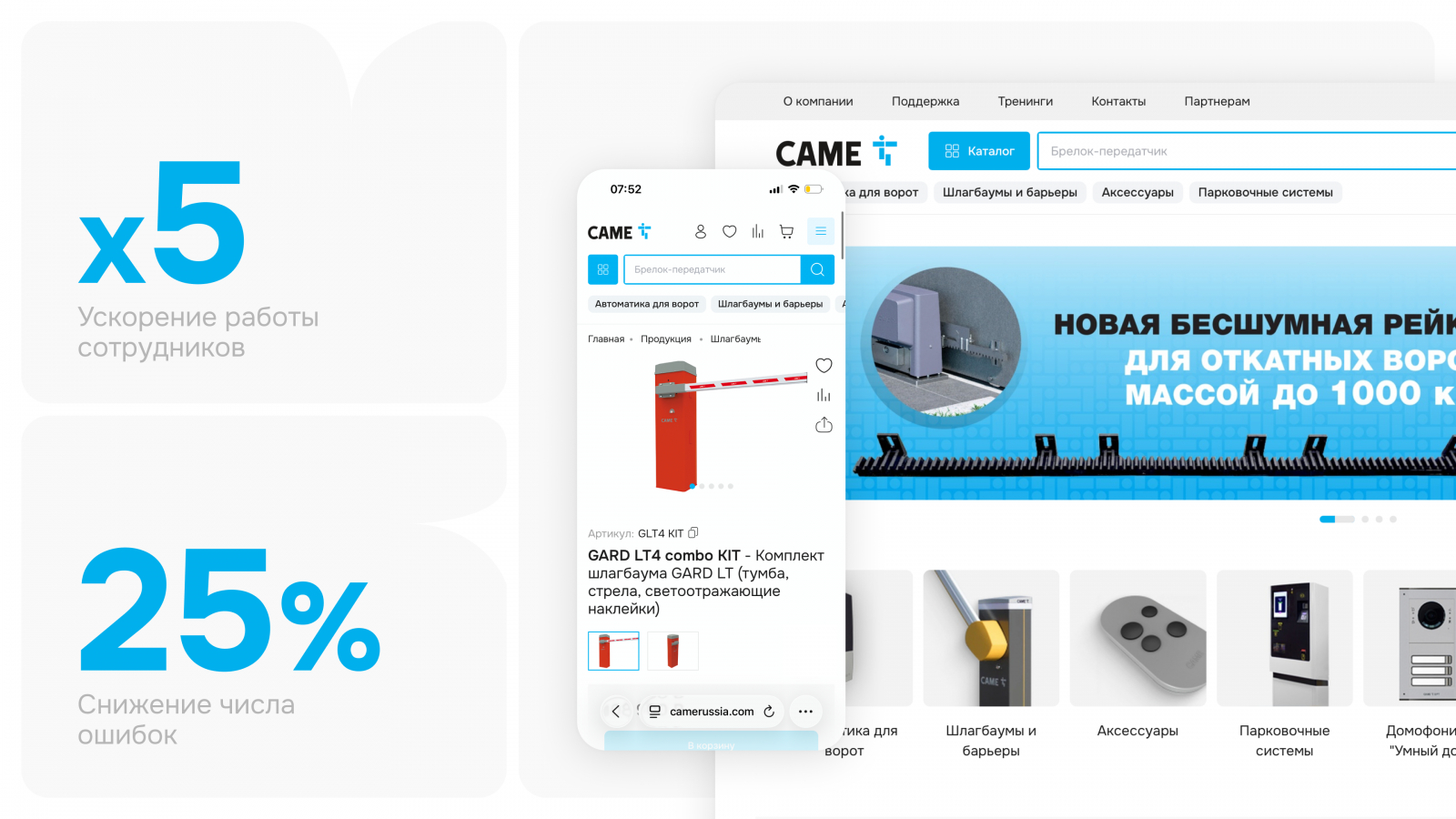 В результате автоматизации и оцифровки данных аналитики CAME смогли обнаружить, что теряются около 25% заявок. Система помогла начать обрабатывать их, что обеспечило прирост в заказах.