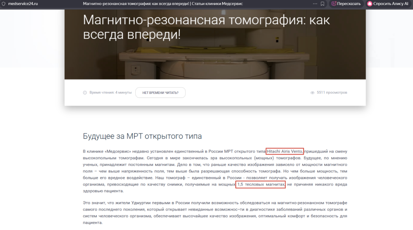 Клиника «Медсервис» продолжает гордиться тем, что у них “единственный в республике открытый томограф”... и не уточняя, что он морально устарел на 20 лет.