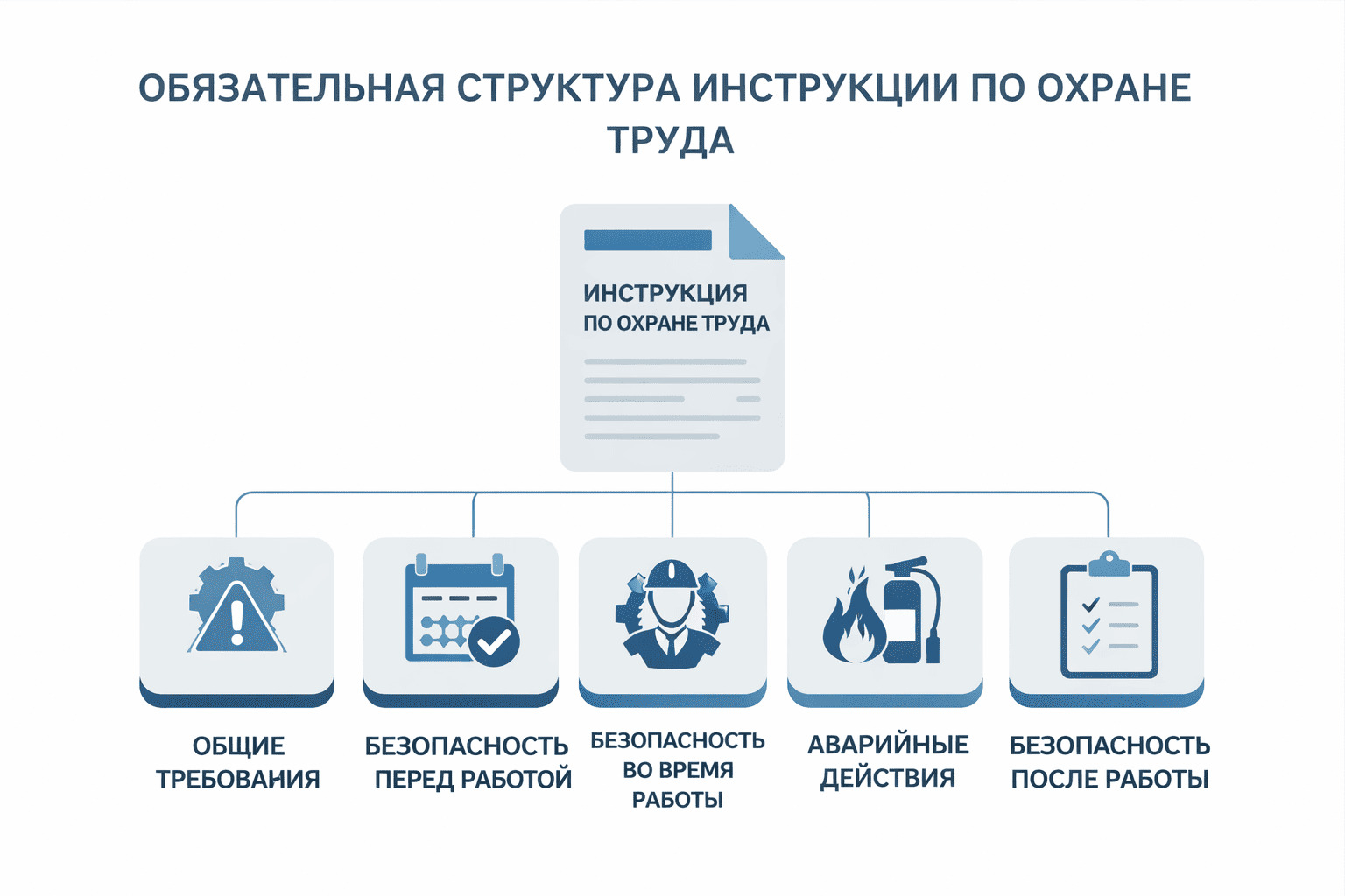 Согласно Приказу № 772н, инструкция должна содержать не менее пяти разделов: