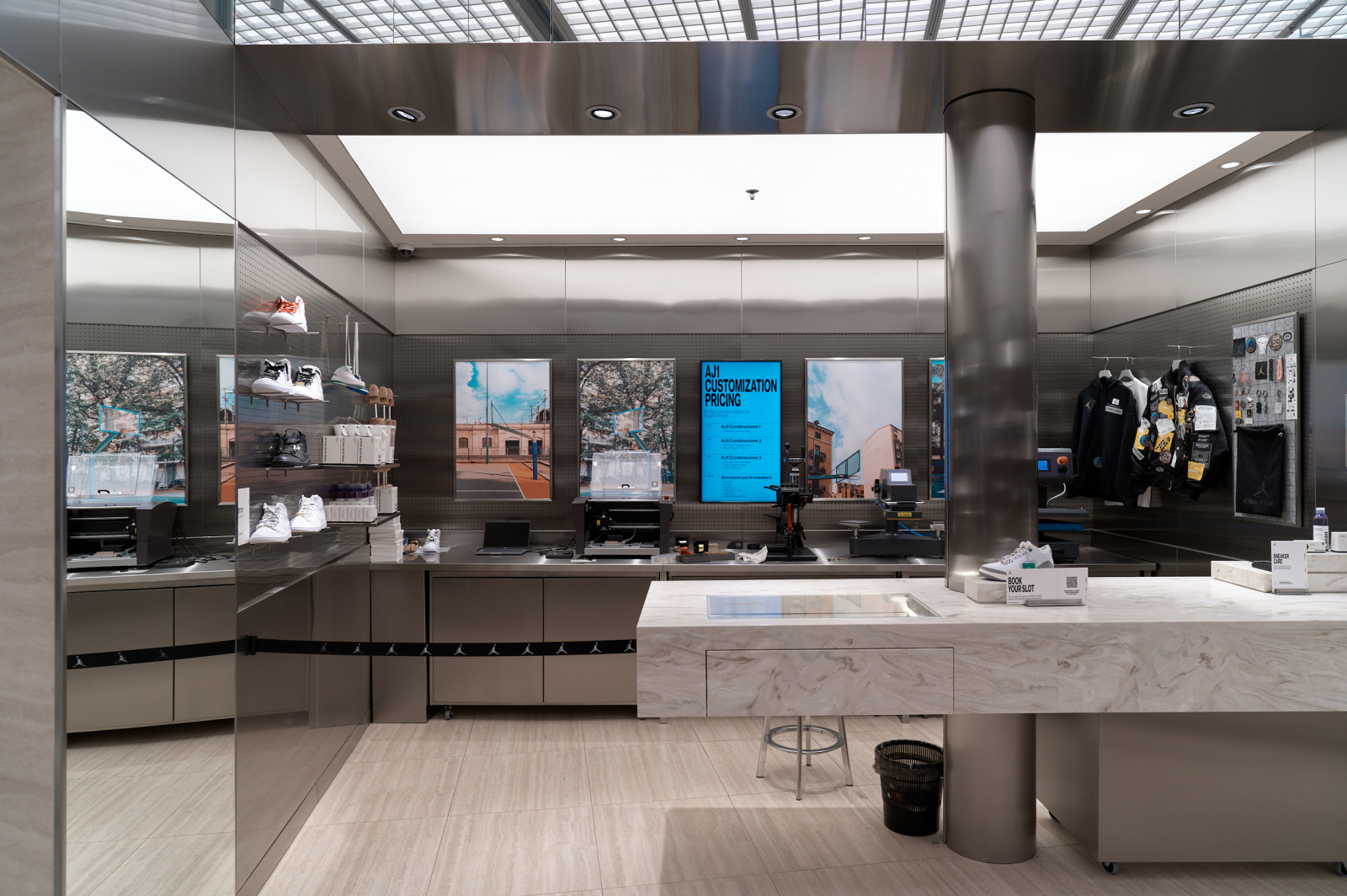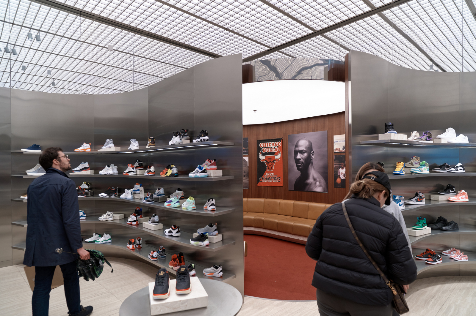 Недавно разбирал фотографии с миланской выставки Salone del Mobile и наткнулся на съёмку флагманского магазина Nike Jordan. Это тот случай, когда дизайн и брендинг воспринимаются как единая целостная система. Все детали планировки и дизайна в магазине логичны и работают как слаженный механизм. Мне захотелось разобрать интересные приёмы этого пространства, которые можно использовать в наших реалиях.