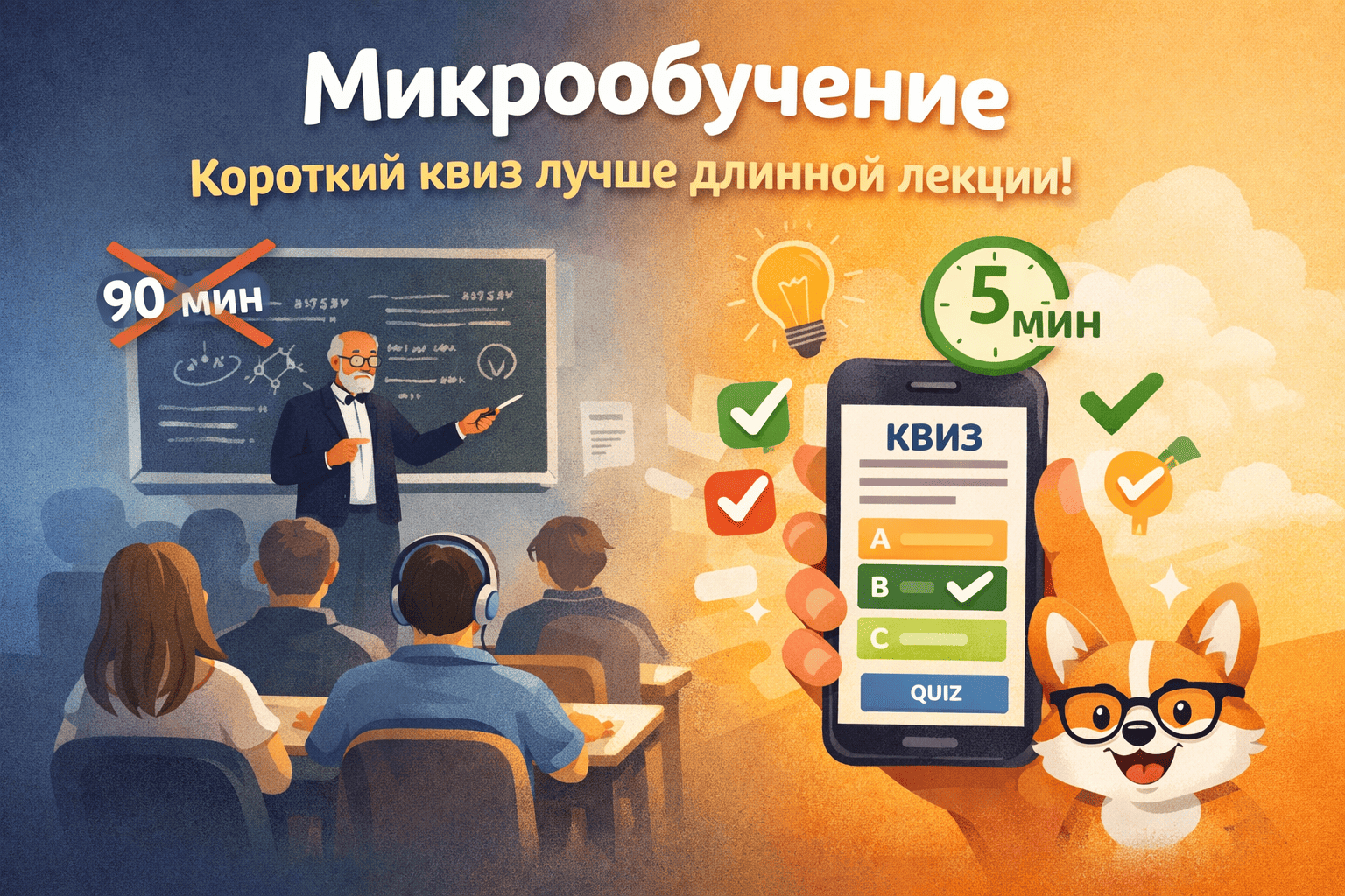 Нет. Лекции по-прежнему важны для формирования общей картины и объяснения сложных связей. Микрообучение не заменяет лекции, а дополняет их, закрывая самый уязвимый момент — проверку понимания и закрепление знаний.