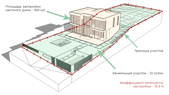 Обратите внимание на коэффициент плотности застройки в выбранном поселке. Зачастую плотность застройки не должна превышать 30% от общей площади участка. Например, если вы подобрали участок 6 соток и хотите построить дом 600 м2, то он однозначно должен быть 2-х этажным.