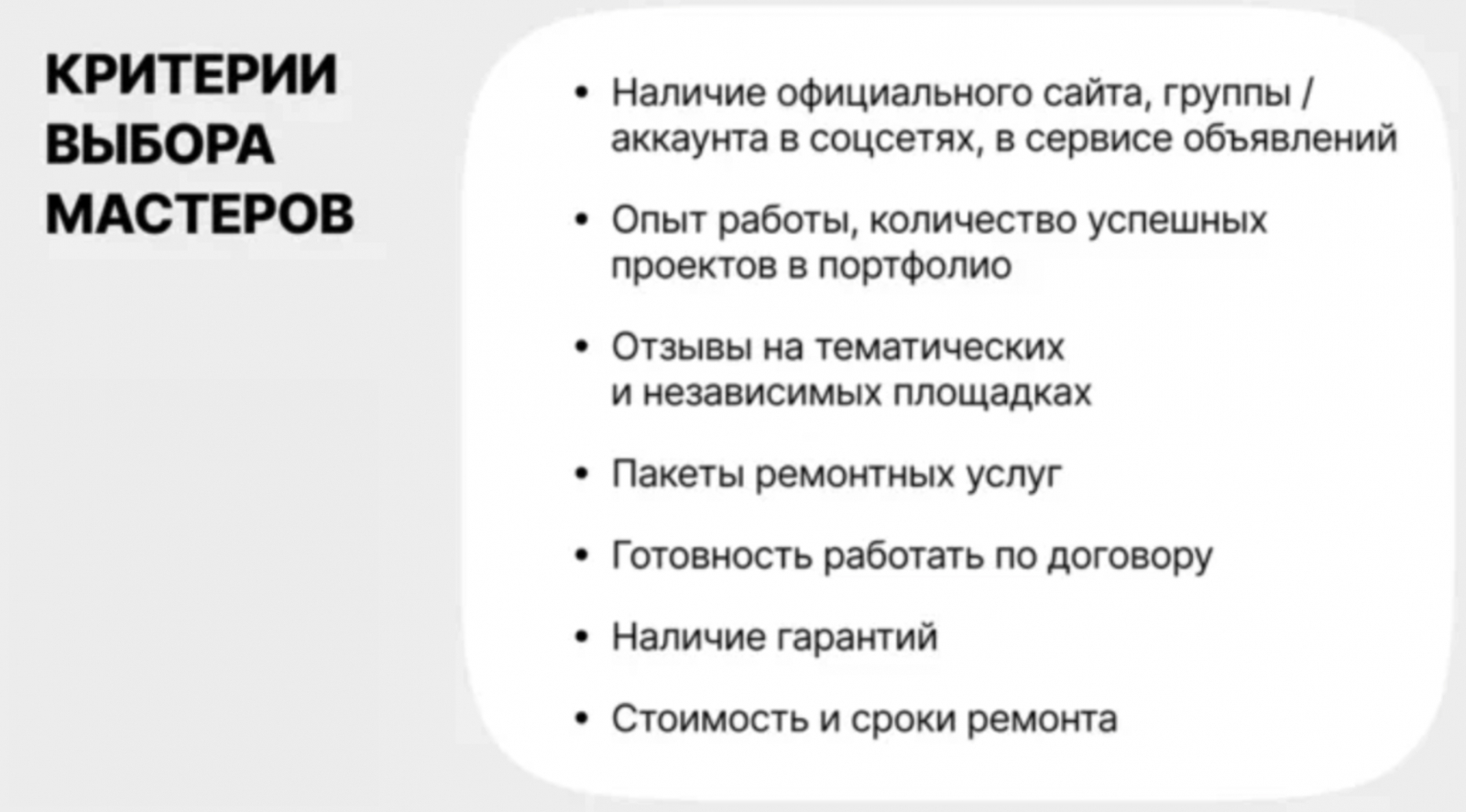 Если вы планируете доверить ремонт квартиры в новостройке профессионалам, к выбору подрядчика стоит подойти особенно внимательно. Изучите реальные отзывы клиентов, которые делали ремонт, запросите портфолио и примеры завершённых объектов, оцените опыт работы именно с новостройками в Москве. Обязательное условие — заключение официального договора, в котором должны быть зафиксированы сроки ремонта, этапы выполнения работ, стоимость ремонта и гарантийные обязательства.