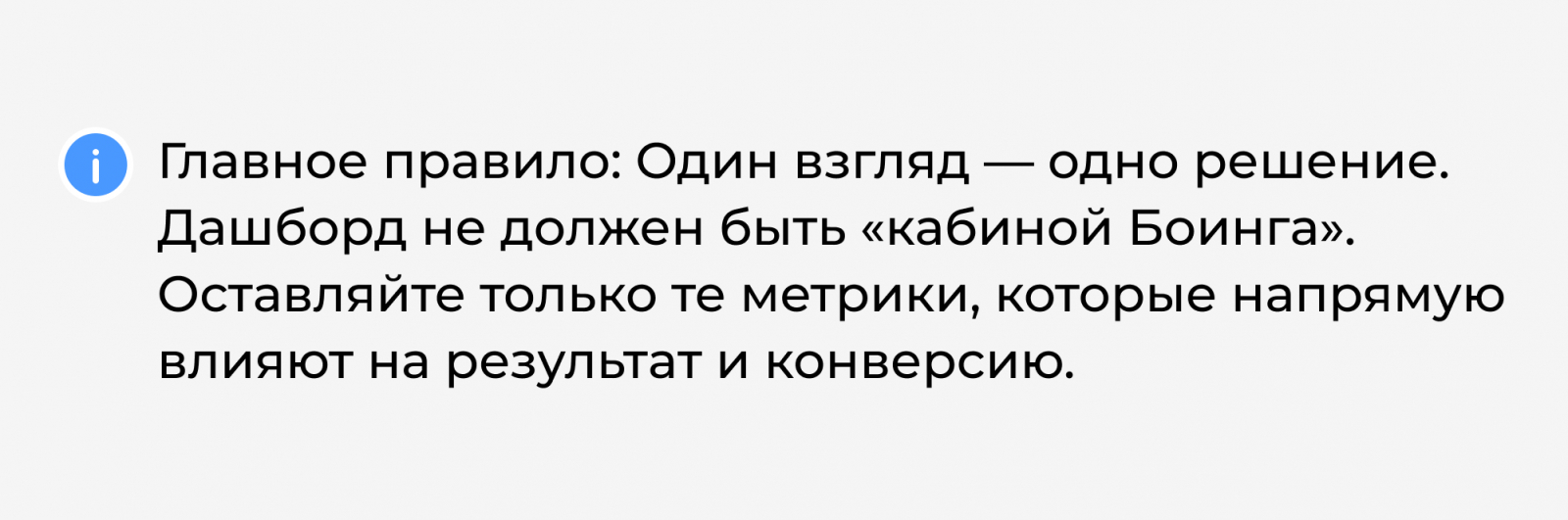 Это искусство превращать сложные данные в интуитивно понятные сигналы, которые вызывают действие, а не требуют изучения. Как пилот истребителя ясно реагирует на красную лампочку, которая оповещает о проблеме, так и команда должна видеть состояние воронки и кампаний в реальном времени.