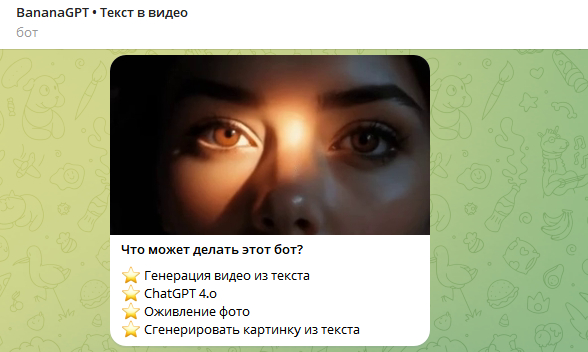 🔥 Кстати вот отличный бот, который генерирует изображения и видео прямо в тг - BananaGPT
